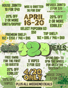 Whether you’re a local or searching for a dispensary near me, Skunked is your go-to spot for an unforgettable 4/20 celebration.