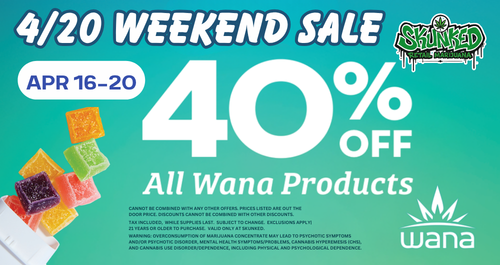 π¬ Wana 40% OFF - 4/20 Week Special at Skunked πΏπ₯ Get ready for the biggest cannabis holiday of the year with an unbeatable deal! From April 16th through April 20th, Skunked is celebrating 4/20 with 40% OFF ALL Wana products π¬π₯ Whether youβre a fan of classic gummies, fast-acting edibles, or looking to try […]