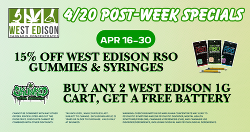 β‘ West Edison Specials - Extended 4/20 Deals at Skunked πΏπ¨ The 4/20 savings donβt stop hereβWest Edison is bringing you an extended deal running from April 16th through April 30th β‘ Take advantage of this two-part promo designed to keep you stocked before and after 4/20: π¨ Buy 2 Carts, Get a FREE BatteryPerfect […]