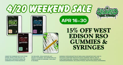 15% OFF RSO Gummies & Syringes Apr 16–30—stock up & save! Some Exclusions may apply.